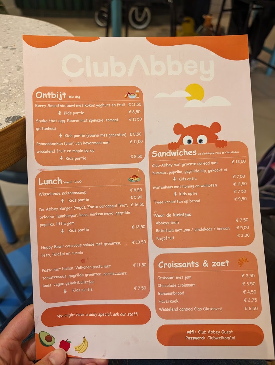 The menu at Club Abbey offers a range of options suitable for children and adults, focusing on breakfast, brunch, and lunch meals. It is organized into several key groups, catering to different tastes and dietary needs.